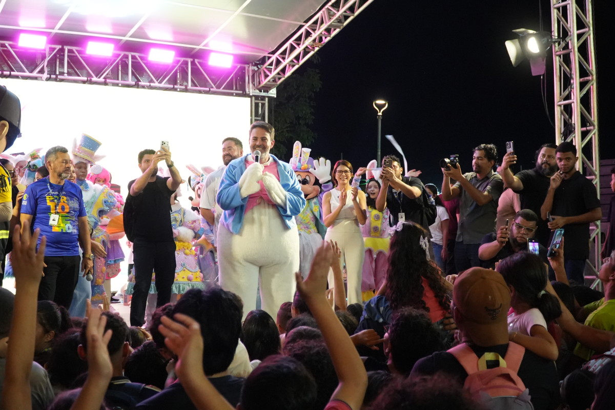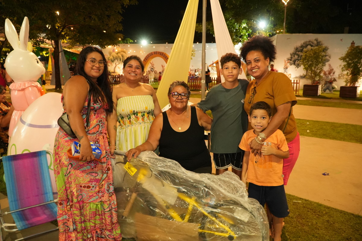 Stephany Souza chegou cedo, às três da tarde, e viu de perto a alegria dos filhosLogo na entrada, a decoração temática, os espaços interativos, apresentações culturais deram o tom de uma celebração pensada para acolher. Na última quinta-feira (02), aos poucos, o parque da cidade foi sendo tomado por risos, olhares curiosos e passos apressados de crianças encantadas com cada detalhe. Entre luzes, cores e personagens, o espaço se transformou em um cenário de afeto, onde famílias inteiras encontraram tempo juntas. A programação contou com caça aos ovos, sorteio de 25 bicicletas, além de apresentações culturais, como o teatro da Paixão de Cristo e diversas outras atividades.