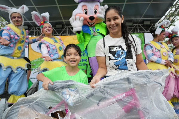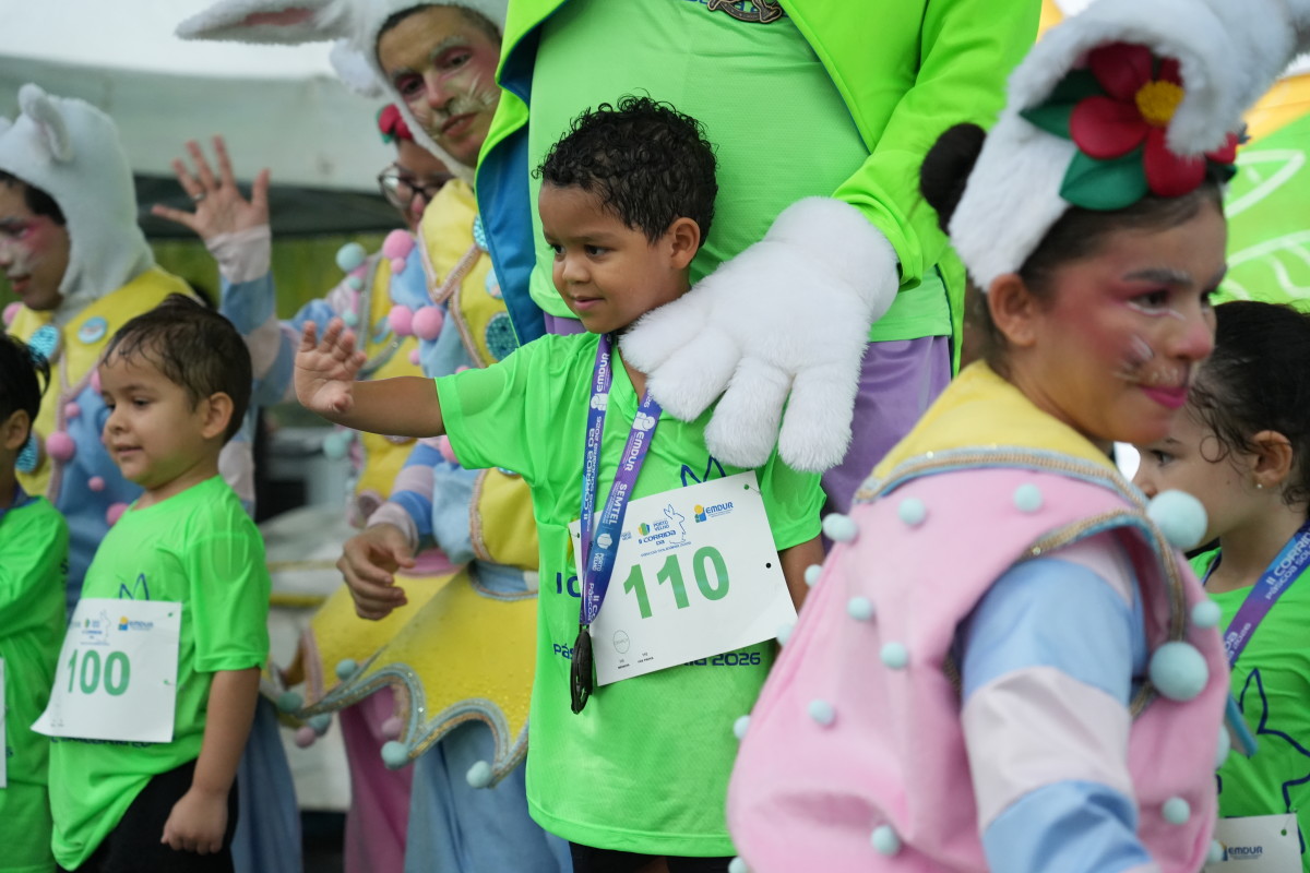 Fábia Regina, mãe do pequeno Heitor da Silva Mendes, de apenas oito anosDiferente dos adultos, que correram pelas ruas no entorno do parque, as crianças competiram em um percurso montado dentro da própria estrutura do Parque da Cidade. E levaram a disputa a sério, com direito a aquecimento ao lado da turma do Coelhinho da Páscoa, minutos antes da largada.